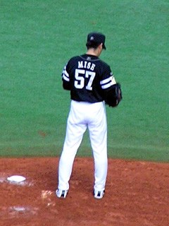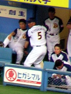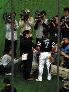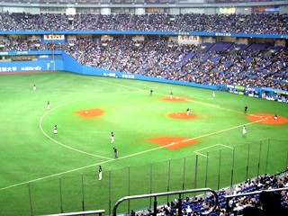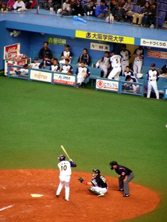 福岡ソフトバンクホークス内野手、フリオ・ズレータ。 2003年、日本シリーズ第一戦で、阪神・安藤からサヨナラタイムリーを放った男です。 ファンサービスの精神も強く、カメラに向かっての「パナマウンガー、ヨカロウモン!」の掛け声や、 ヒーローインタビューでの「福岡最高バイ!」「絶対アリカメナイ!」発言は記憶に新しいところです。 さらに子供好きでもあり、子供病院を訪ねて、難病と戦う子供たちを見て、人目もはばからず涙したというエピソードも残っています。 しかし一方で、乱闘をしょっちゅう起こすことでも有名です。 特に有名なのが、2004年9月9日、福岡ドーム(当時)でのロッテ戦で、ピッチャー・セラフィニ(当時)のすっぽ抜けた球に腹を立て、乱闘騒ぎとなり退場処分となったものです。 2006年4月16日、福岡Yahoo!JAPANドーム、対日本ハム戦。 この日までに、ズレータは上に述べたような乱闘騒ぎで、過去3年と少し在籍する中で、合計5回退場処分を受けました。そしてこの日。ピッチャー・金村のデッドボールに腹を立て、金村を殴りつける騒ぎに。この事件で負傷した金村の出場選手登録が抹消されるという事態に。また球団側も、6度目となる暴力行為による退場処分を重く見て、10試合の出場停止処分及び100万円の罰金という、昨年ヤクルト・藤井投手を殴って退場処分になった中日・T.ウッズ並に厳しい処分を受ける事になりました。 そしてその「10試合」の中には、今回のオリックス戦も含まれているのです。 さてオリックス。 4月1日、スカイマークスタジアムで行われた対日ハム戦後、清原選手は足を痛めて欠場が続きました。 前回(4/2)の観戦後、私ではない影の存在・豊田元浩がこんなことを言った記憶があります。 3週間後(4/23、対ソフトバンク)にまた来てあげるんだからねっ! それまでに足治してなさいよっ、 バカーーーっ!!! ふつうに考えたら、3週間あれば、足は治ります。 というか、治りました。東京ドームの日ハム戦では、不振の中村に代わって4番を張るように。 …が。 4月20日、東京ドーム、日本ハム対オリックス、1回表バファローズの攻撃、打席に清原。 先発ピッチャーはダルビッシュ有。 ダルビッシュの投球が、清原の左手を直撃。 「左手第5中手骨の打撲で全治3週間」と診断。 3歳になる清原選手の息子さんが、 泣きながら、病院へ向かう清原を見送ったという… 「故意を感じた死球に対しては、 命を懸けてマウンドに突っ走ってそいつを倒したい。」 この試合後、このようなことを述べて、清原は怒りをあらわにしました。 結果、この前日に行われた対ソフトバンク戦でも、清原は欠場。 まあ、なんということでしょう。 東京で復帰した時、「今度は絶対清原が見られるはずや」と確信していたのに、 その直後に再び事実上の戦線離脱。今日も半ば諦めモード。呪ってやる、ダルビッシュぅぅぅ〜〜〜(違 あぁ、儚い。 この間は、清原と言う大事な役者が欠けたと言ってましたが、 今回はさらに、ソフトバンクからも、ズレータという大事な役者が欠けてしまうという事態に。 しかし毎年恒例(?)の、 「豊田元広・大阪ドーム対ホークス戦にへ強制連行されるの巻」 第3弾となる友人2人との観戦会が行われる事に。 地下鉄は相変わらずの大混雑。大阪ドーム前千代崎駅も、電車がつく度に階段に人が溢れていた。 例によって、中に入れば二階席強制連行。 今回は三塁側、比較的見渡しの良い、下のような位置を確保。 ![]() 両軍とも役者は欠けていますが、とりあえずスタメン発表だけ聞く。 「1番、Left Fielder, Yoshitomo Tani! No.10!」 昨日DHの谷がレフト。と言うことは、DHは別の人…? 「4番、Third Baseman, Norihiro Nakamura! No.8!」 4番はノリか。ちなみにこのときまでの打率は.167。 もはや「儚い」とか言ってる場合ではない。 「5番、First Baseman, Hirotoshi Kitagawa! No.23!」 ファーストはやっぱ北川だよな。 手ぇ怪我してるのに、守備なんてできるはずないしな。 ってことはDHだ、誰だ? 「7番、DH, Karim Garcia! No.28!」 そうか、やっぱりガルシアか。 ダルビッシュに告ぐ。 「アンタ、おぼえときなさいよ(怒)」