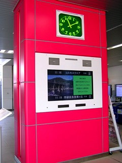 白庭台・学研奈良登美ヶ丘と同様、駅の改札口前には、列車案内や史跡案内を映し出すモニターが設置されています。 |