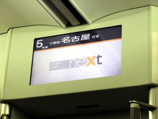 2004年から2005年にかけて、愛知万博(愛・地球博)に絡んで、名古屋周辺では、最近では希に見る勢いで鉄道ファンの興味をひく新路線の開業などが相次いだ。以前、あおなみ線の一部区間だけ乗車したが、今回、ゴールデンウィークの機会を利用して、名古屋に泊り掛けで、その辺の路線を調査しようと思った。 …が。 大学入学直後にひいた風邪が長引き、このゴールデンウィーク中も微熱や頭痛連発。こんな状態で無理して旅行して悪化したらマズイので、日帰りに方針変更。さらに後ろに日曜を置いて、一日ゆっくり休んでから元の生活に戻そうと考え、その日を5月6日土曜日に決定、早速駅へ近鉄特急券を買いに行った。 そう、今回の旅の目的には「アーバンライナーネクストの乗車」もある。プラスは前に乗った旧アーバンライナーと変わらないし、折角乗るならネクスト、そう思ったのだ。 2006年5月6日、大和八木駅。 前から乗ろうと思っていたアーバンライナーネクスト。しかし、たまに検査入場の関係でプラスが代走することもある。それだといやだなぁ…と危惧しながら電車を待つ。 そしてやってきた、あの独特のVVVFインバーターの音を持つアーバンライナー・ネクストが。 早速乗車。するすると動き出して、名古屋までの約1時間30分の無停車時間を味わうことにしよう。 2003年のダイヤ改正以降、近鉄特急で自動放送が廃止されたとかいう噂を聞いていた。それ以前に、私はアーバンライナーで名古屋まで行ったことがあった。その時、あの関西圏おなじみの男性(津田英治さんだったかな?)の、温もりある声の自動放送&有名な童謡などの一節をアレンジした車内チャイムに感動した(んな大げさな)ことがあったが、それがもう聞けないの…?と思うと少し寂しい感じもした。 が、それは杞憂だった。発車直後、「お待たせいたしました 近鉄特急をご利用いただきまして ありがとうございます…」という、あの声が聞こえてきた。しかもネクスト(新車)だから音質もクリア。この声が聞ける、ということは、あの車内チャイムも聞けるということだよね…?よかった、よかった。 大和朝倉を通過すると、列車は一気に山中へ分け入る。ここから約40分間、電波圏外のエリアになるという。かつて車内の公衆電話が当たり前だった頃は、その旨伝える自動放送もあったが、携帯電話が当たり前となった今回は、もうその放送も聞けなかった。試しに、40分で伊勢中川まで行けるのか、時計で時間を見てみようと思った。 ![]() 車内のモニターは上のような感じ。割とモニターに近い場所の席だったので、モニターに映る前面展望と横の車窓を眺めながら、新緑の山の中を、列車は非常に心地いいスピードで駆け抜けていく。私の隣の席は空席。名古屋まで止まらないということで、横には誰も座らない。そこに荷物を置いて、フットレストに足を預ける。なんだか贅沢な気分に浸れるってのもいいよね。 乗車率も割と中程度で、落ち着いた車内の中で、お客さんも思い思いのことをしている。車窓を眺めている人もいるし、イビキかいて寝ていた人もいたし、名古屋に着くまでずっとお喋りしていた人もいた。楽しい旅で、友達と楽しくお喋りというのも、またいいことじゃないですか。最近の新幹線みたいにやたらピリピリしたビジネス列車ではできないことよ。まぁそこが名阪近鉄特急の新幹線に対抗する売りらしいけど。 赤目口で一端車窓が開け、名張盆地に入る。程なく名張を通過すると、前のモニターに「ただ今名張駅付近を通過中です」と表示された。この特急のコースが全路線図と共に表示され、今列車がどの辺まで来ているかが一発でわかるというスグレモノ。新幹線でしか見たことのないこの機能が、まさか近鉄特急にまで普及していたとは!! さて伊勢中川のあの短路線に差し掛かったあたりで時計を見ると、先ほど大和朝倉を通過した辺りからほぼ40分。ちなみに同じ区間を快速急行で走ると、大抵1時間程度かかる。名張〜榊原温泉口間を各駅に停車するうえ、ほぼ必ずといっていいほど特急の退避で長時間停車するので、余計に時間を取ってしまう。折に触れて言っている通り、私は同じ区間を走るなら、各駅停車でノロノロ行くより、優等列車でさ〜っと行くのが好きなので、この辺だけは特急を使っても致し方ないかな、と自己完結してしまう(汗) そうそう、このとき、中川駅の方を見ると、名古屋方面への普通列車が信号待ちで停車していたよ。お先に失礼、と言う感じでなんだか優越感があった(笑) 名古屋線に入って再びスピードを出す。津を通過するときに、宇治山田行きの急行とすれ違った。前4両は2600系(確か)をL/Cカーに改造した車両だったが、後ろ4両を見て愕然とした。車両番号を見ると「9001」。名古屋線・大阪線の車両番号は1000・2000番台が基本(とはいえ奈良線に1026系など1000番台のVVVF車が入るなど、その原則も崩れつつあるけど)で、この9001-9101の2両編成も、もともとは奈良線にいたも